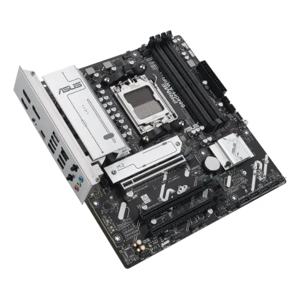 تتميز المازر بورد بمقبس AM5 يدعم معالجات AMD Ryzen™ المكتبية، وتوفر توسعة قوية بفتحة PCIe 4.0 x16 (تعمل في وضع x16 مع SafeSlot Core+)، وفتحتين PCIe 3.0 x16 (تعمل في وضع x1). تستخدم تصميم طاقة رقمي 8+2+1 طور لضمان ثبات توصيل الطاقة، وتتضمن أربع فتحات DDR5 DIMM تدعم القناة المزدوجة. أما بالنسبة للتخزين، فتوفر ثلاث فتحات M.2: اثنتان تدعمان PCIe 4.0 x4 (M.2_1 وM.2_2)، وواحدة تدعم PCIe 3.0 x4 (M.2_3)، مما يضمن اتصالاً سريعًا ومرنًا بأقراص SSD.