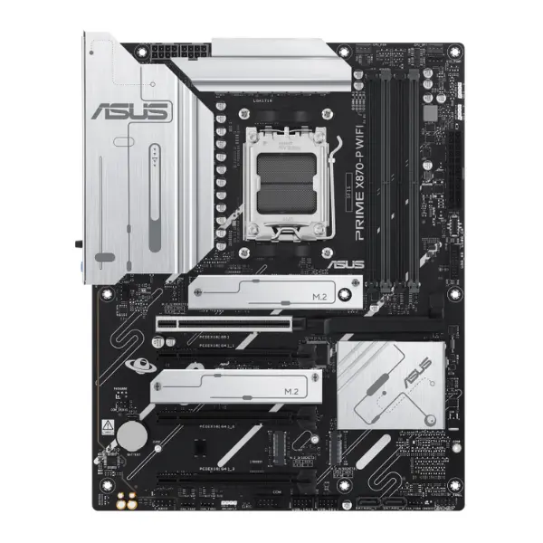 يتضمن جهاز PRIME X870-P WIFI أربع فتحات M.2 لاستيعاب خيارات تخزين متنوعة. تدعم إحدى الفتحات PCIe 5.0 لمعدلات نقل فائقة السرعة تصل إلى 128 جيجابت في الثانية، وتعمل فتحتان بسرعة 64 جيجابت في الثانية عبر PCIe 4.0، وتعمل الثالثة بسرعات PCIe 3.0. هذا يسمح بفترات تشغيل سريعة ووصول سريع إلى التطبيقات والملفات.