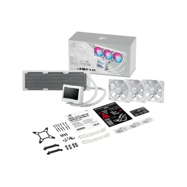 ارتقِ بتجربة التبريد مع Ryujin III White Edition. يتميز هذا المبرد الرائع باللون الأبيض بالكامل بشاشة LCD كبيرة ملونة كاملة مقاس 3.5 بوصة، قادرة على عرض إحصائيات النظام في الوقت الفعلي، وصور GIF متحركة، أو حتى تصميماتك الخاصة. تحت السطح، تضمن مضخة Asetek المتطورة من الجيل الثامن تبريدًا فائق الهدوء لأحدث معالجات Intel وAMD، بينما تساعد مروحة Axial-tech المدمجة في الحفاظ على درجات حرارة مثالية لوحدة تنظيم الجهد (VRM). يدور سائل التبريد عبر أنابيب مقواة بطول 400 مم ومشع أكبر، ويتم تبريده بواسطة ثلاث مراوح ROG ARGB مترابطة بقطر 120 مم، مما يجعل التركيب والتخصيص أسهل من أي وقت مضى.
