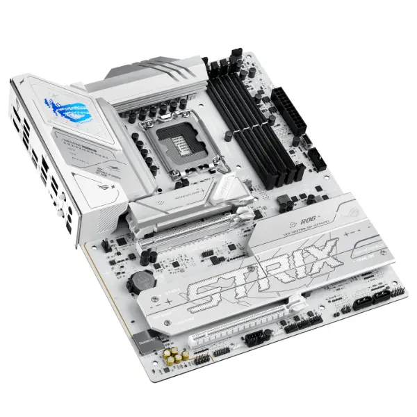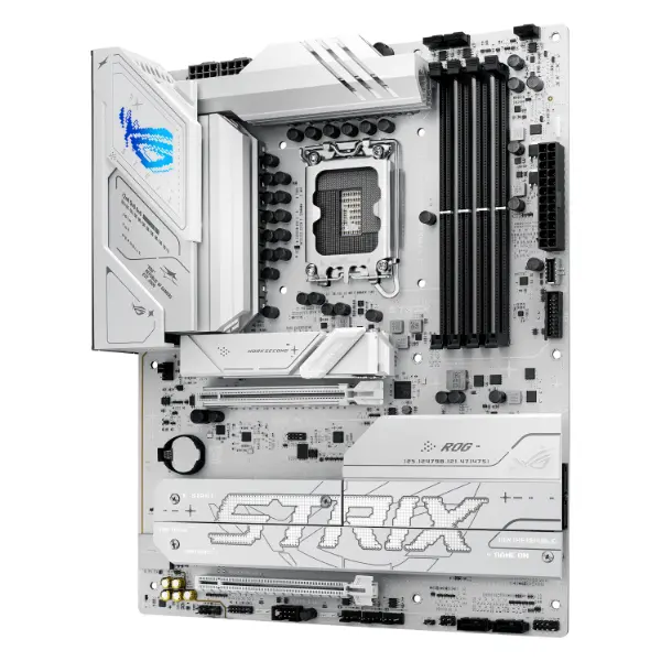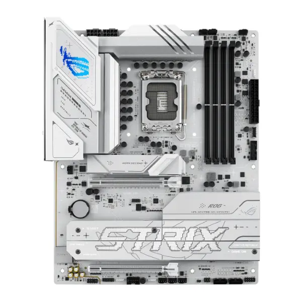 تتميز مازر بورد روج ستريكس B860-A بتصميمها الأبيض الأنيق والناعم الذي يُضفي لمسةً جماليةً على أي جهاز كمبيوتر. تُضفي مشتتات الحرارة المعدنية المتناسقة لمسةً راقية، بينما تتيح لك إضاءة Aura Sync RGB القابلة للتخصيص تخصيص جهازك بتأثيرات إضاءة خافتة أو نابضة بالحياة.