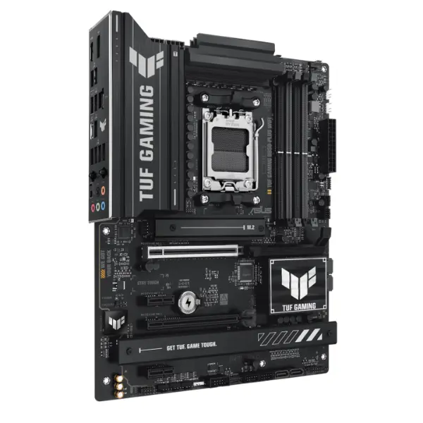 صُممت مازر بورد تاف جيمنج B850-بلس واي فاي لأجهزة الكمبيوتر عالية الأداء التي تعمل بمعالجات AMD Ryzen™ المكتبية، وتتميز بمقبس AM5. تدعم المازر بورد أربع فتحات DDR5 DIMM ببنية ثنائية القناة، بالإضافة إلى تقنية AEMP لتحسين أداء الذاكرة. أما بالنسبة للرسومات والتوسعات، فتُوفر فتحة PCIe 5.0 x16 SafeSlot، وفتحة PCIe 4.0 x16 (وضع x4)، وفتحتي PCIe 4.0 x1. تتميز المازر بورد بتوزيع طاقة قوي بفضل تصميم مراحل الطاقة 14+2+1 (80 أمبير لكل مرحلة)، مما يضمن الاستقرار في ظل أحمال العمل الثقيلة.