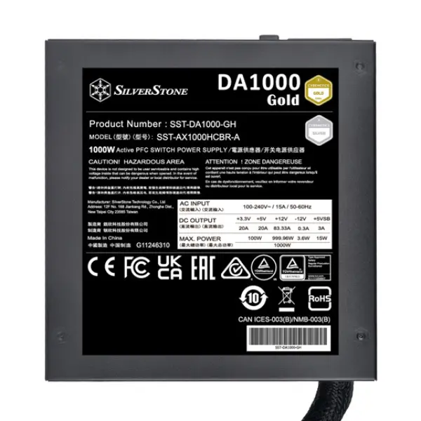 سيلفر ستون DA1000 جولد باور سبلاي ATX شبه معياري من Cybenetics بقوة 1000 واط