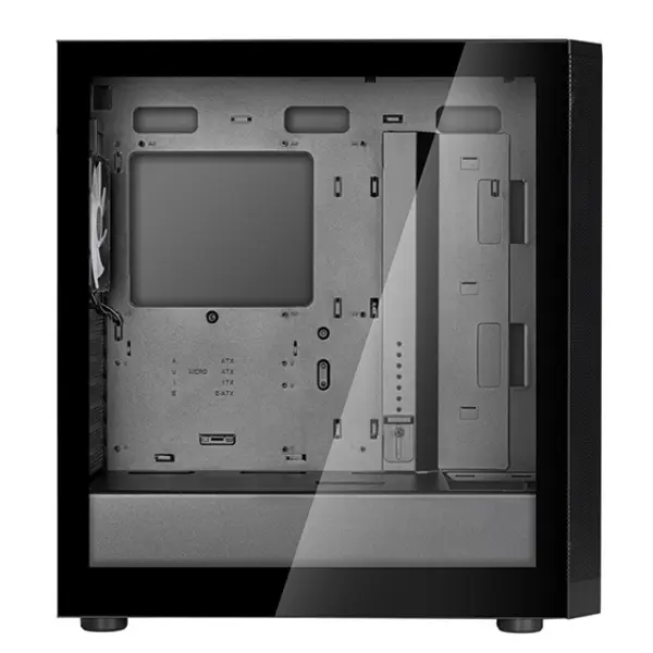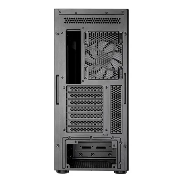 تتميز العلبة بلوحة أمامية شبكية مثقبة بالكامل لضمان تدفق هواء مثالي، وتأتي مزودة بإضاءة ARGB زاهية لإضفاء لمسة جمالية جذابة. تتضمن منافذ الإدخال والإخراج العلوية المريحة منفذ USB Type-C، ومنفذي USB 3.0، ومنفذي صوت وميكروفون منفصلين.