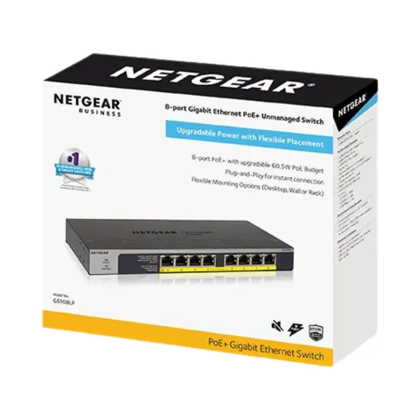 نت جير GS108LP سويتش PoE+ Unmanaged، مزود بـ8 منافذ جيجابت ايثرنت 60 واط