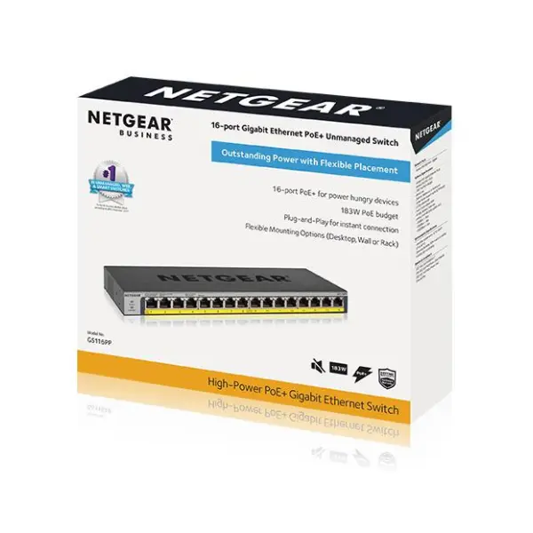 نت جير GS116PP سويتش PoE+ Unmanaged، مزود بـ16 منفذ جيجابت ايثرنت 183 واط