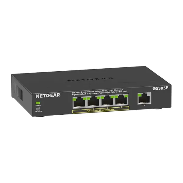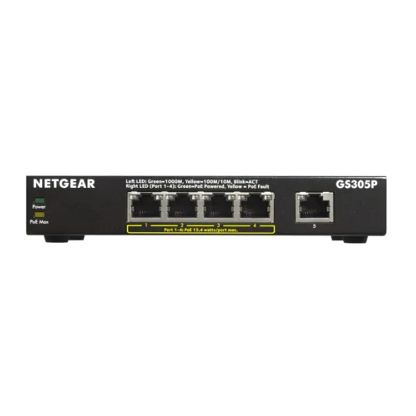 نت جير GS305P سويتش PoE+ Unmanaged، مزود بـ5 منافذ جيجابت ايثرنت 63 واط