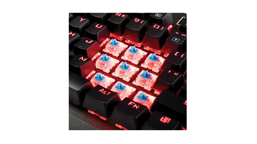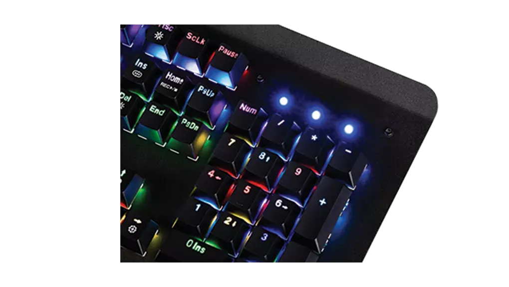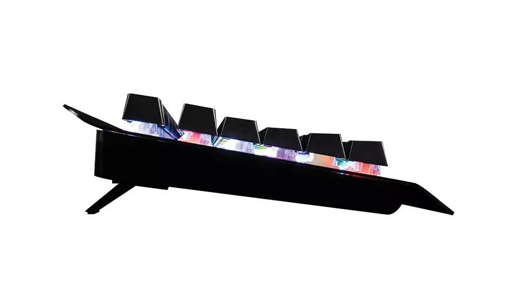 The keyboard is designed for greater responsiveness, with a key stroke of 2.0mm and a mechanical switch design with a lifespan of 60 million switches. The backlights for the keycaps and gaps are color uniform, with mix light or RGB light, and the keyboard has an intelligent sleep mode that turns off the backlight when the host enters sleep or standby mode.