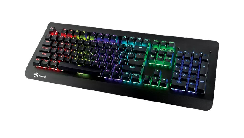 The Standard MR18000 keyboard is designed for gaming and is made with a metal body and standard blue switch buttons. It features 18 RGB light effects, with cable shielding and a 1.8-meter copper cable, and is compatible with a USB plug. The keyboard is classified as Class A and is specifically. It is made with anti-rust, scratch-resistant, and injection-molded plastic, with durable keycaps that are not easy to fade and come in multiple colors.