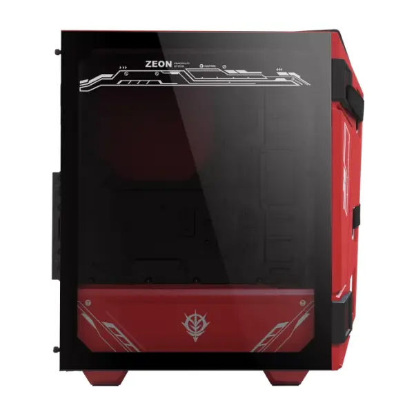 ASUS TUF Gaming GT301 ZAKU II Edition Mid-Tower Case is a limited-edition masterpiece inspired by the legendary ZAKU II Mobile Suit from the GUNDAM universe. With its striking red and black color scheme and Char Aznable’s Custom markings, this case transforms your setup into a true collector’s item. The perforated honeycomb front panel not only enhances airflow but also reinforces the battle-ready aesthetic. Its 4mm tempered glass side panel allows you to proudly display your internal components while maintaining a clean and durable design.