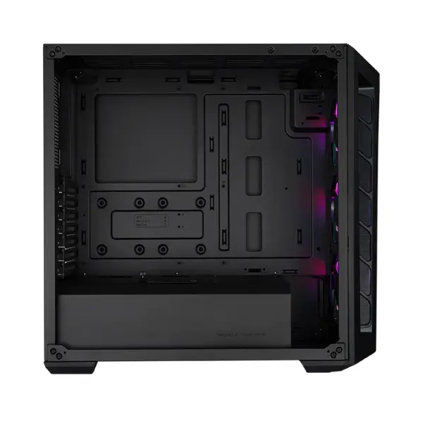 At the heart of the MB511 ARGB is Cooler Master’s Fine Mesh technology, a front panel design that maximizes airflow without compromising dust filtration. Reviewers and critics have consistently praised this mesh design for its ability to keep systems cool while maintaining clean internals. Unlike traditional mesh, the Fine Mesh refracts light in a unique way, creating a halo effect when illuminated by the included ARGB fans. This ensures not only optimal thermal performance but also a striking visual appeal that enhances your gaming atmosphere.