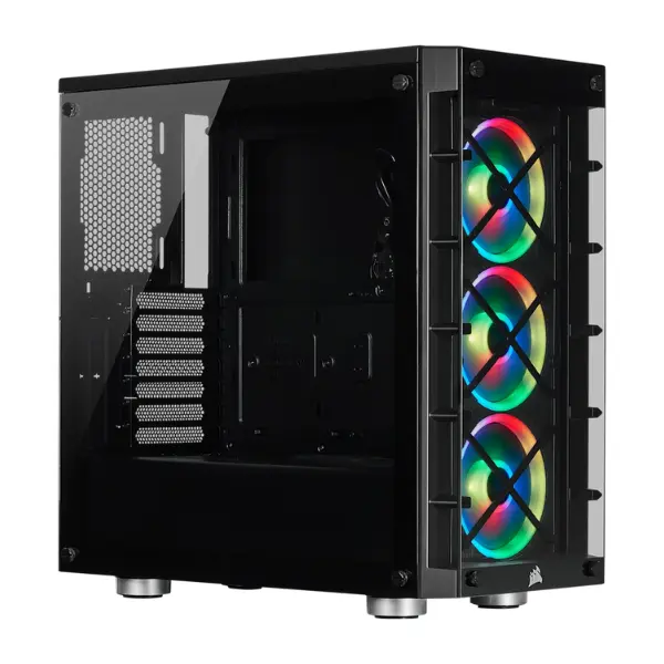 Corsair iCUE 465X RGB Mid-Tower Gaming Case combines style, functionality, and durability for PC enthusiasts who demand performance and aesthetics. Built with a solid steel chassis and equipped with dual tempered glass panels—front and side—it showcases your components in stunning clarity while maintaining excellent airflow through integrated ventilation gaps. The edge-to-edge glass design enhances the visibility of your RGB fans and hardware setup, making it ideal for gamers who want their build to shine from every angle.