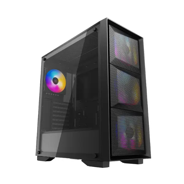 The DeepCool MATREXX 50 Mesh 4FS is a high-performance mid-tower PC case engineered to deliver exceptional airflow and cooling efficiency. Built for gamers, creators, and PC enthusiasts, it combines modern aesthetics, functional design, and superior component compatibility. With four pre-installed tri-color LED fans, a mesh front panel, and tempered glass side window, this chassis offers the perfect balance of style, functionality, and thermal performance for demanding builds.