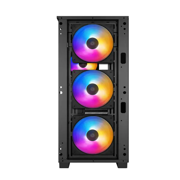 Out of the box, the DeepCool MATREXX 50 Mesh 4FS comes equipped with four pre-installed 120mm LED fans—three positioned at the front for intake and one at the rear for exhaust. These fans feature a vibrant tri-color LED design, creating an eye-catching visual effect without any complicated setup. Simply connect the power, and your system lights up with a balanced glow that complements any build theme, providing both beauty and function from the start.