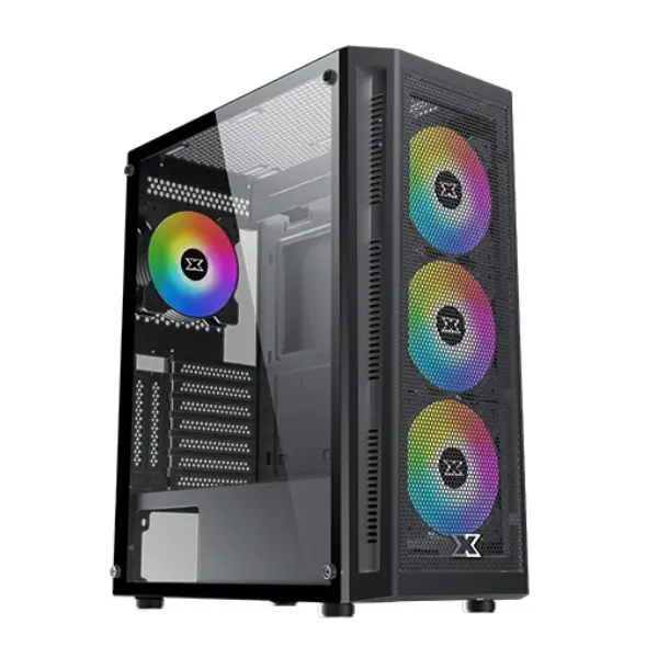 Xigmatek Master X Mid Tower Gaming Case – Black is a high-quality chassis built to deliver both performance and style for gamers and PC enthusiasts. Constructed with durable steel material and a sleek modern design, it features a meshed grill front panel that not only enhances the visual appeal but also allows for superior airflow. The left tempered glass side panel provides a clear view of your internal components, making it perfect for showcasing RGB lighting, high-end hardware, and custom builds. Designed to support ATX, Micro-ATX, and Mini-ITX motherboards, the Master X offers flexibility for all kinds of system configurations, from budget-friendly rigs to professional gaming setups.