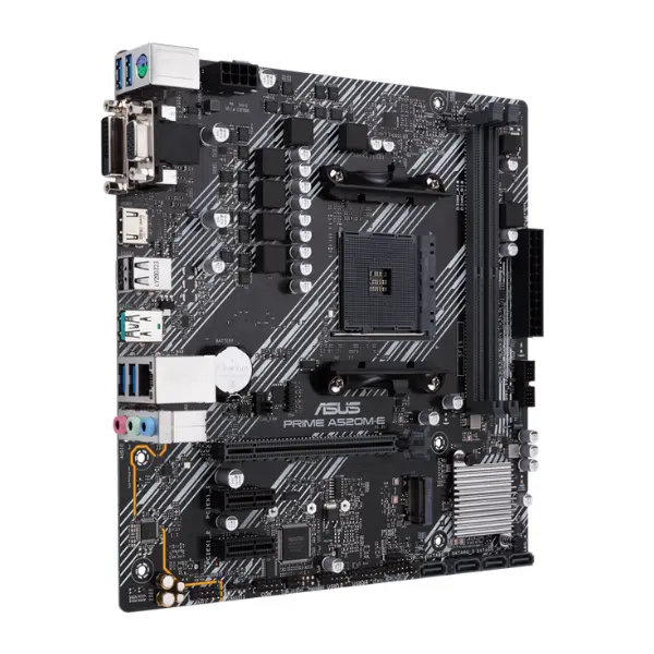 Asus Prime A520M-E AM4 DDR4 micro ATX motherboard is designed for Ryzen™ 5000, 4000 G-Series, and 3000 Series processors, offering reliable performance with comprehensive cooling through a PCH heatsink and Fan Xpert. It supports ultrafast connectivity with M.2, 1 Gb Ethernet, and USB 3.2 Gen 2 Type-A, while multiple safeguards under 5X Protection III ensure durability and system stability. Featuring HDMI, DVI, and D-Sub outputs along with SATA 6 Gbps, this board delivers versatile compatibility and dependable functionality for everyday computing.