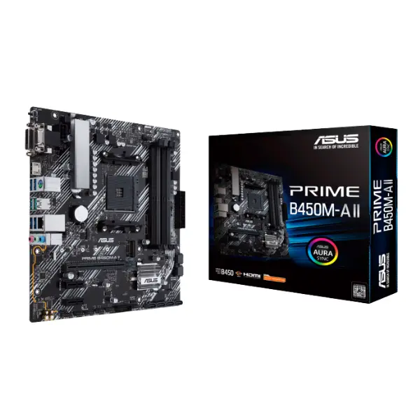 The Asus Prime B450M-A II is designed with premium audio features including LED-illuminated design, audio shielding, dedicated PCB layers, and high-quality capacitors for crystal-clear sound. This makes it ideal for both gaming and entertainment setups. For customization, the onboard RGB header allows you to connect RGB LED strips and sync lighting with other Aura Sync-compatible hardware, giving your build a personalized look.