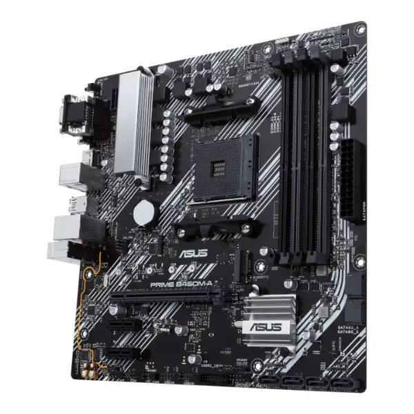 Equipped with a VRM heatsink, PCH heatsink, and Fan Xpert 2+ technology, the Prime B450M-A II keeps temperatures in check even under heavy workloads. ASUS 5X Protection III adds multiple hardware safeguards, including overvoltage protection and safe slot reinforcement, to extend the life of your components. These features ensure long-lasting reliability and consistent system stability.