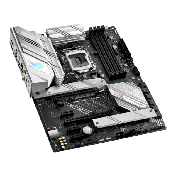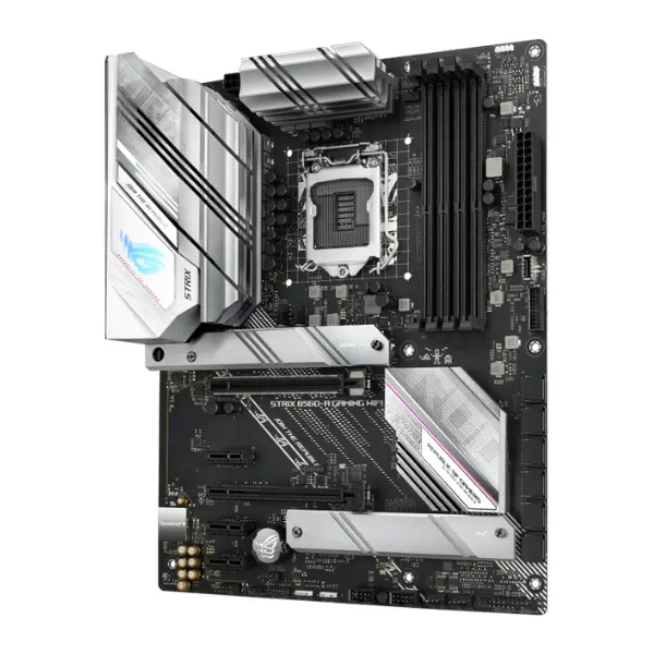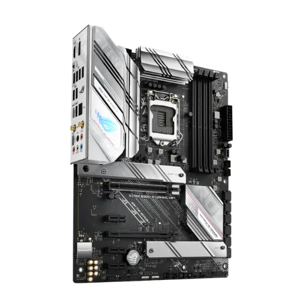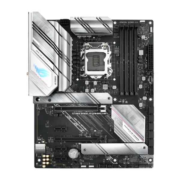 Asus ROG Strix B560-A Gaming WiFi offers all the essentials for building a well-balanced gaming PC powered by 11th Gen Intel® Core™ processors. It supports the latest graphics cards, storage solutions, and networking technologies, enhanced with AI features typically reserved for higher-end models. Its powerful performance is paired with a sleek silver-white design and customizable RGB lighting, making it both high-performing and visually striking.