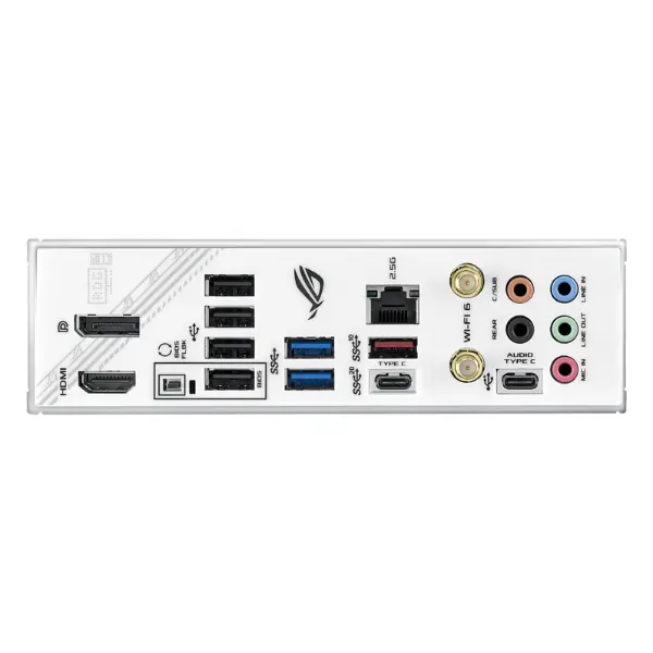 This motherboard delivers comprehensive connectivity with HDMI™ 2.0, DisplayPort 1.4, multiple USB options including USB 2.0, USB 3.2 Gen 1, Gen 2, and Gen 2x2 Type-C®, plus Realtek 2.5Gb Ethernet, Intel® Wi-Fi 6, and an Audio USB Type-C®. It also offers five audio jacks, six SATA 6Gbps ports, and a Thunderbolt header, ensuring versatile and high-speed connections for all your devices.
