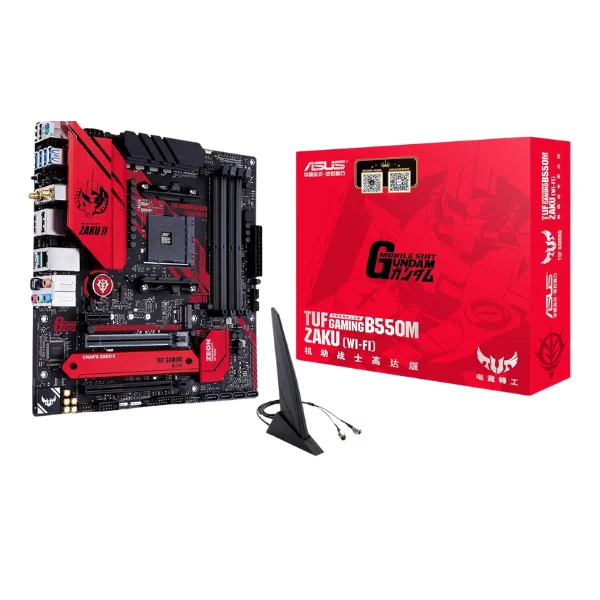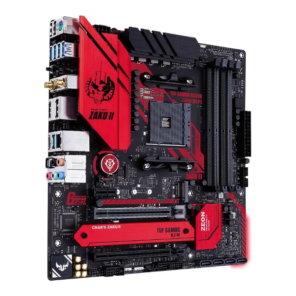 Show your loyalty to the Principality of Zeon with the TUF Gaming B550M (Wi-Fi) ZAKU II Edition motherboard. Designed in the bold red and black theme of Char Aznable’s ZAKU II, this board brings the latest AMD platform to life with powerful gaming features. Built with military-grade durability, advanced cooling, and an enhanced power design, it delivers a truly out-of-this-world gaming experience.