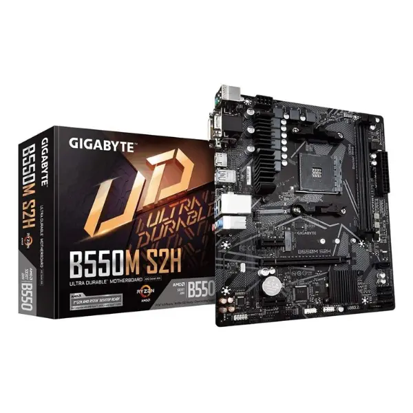 Gigabyte B550M S2H Motherboard is engineered to deliver powerful performance, stability, and efficiency for gamers, creators, and PC enthusiasts. Designed with AMD’s B550 chipset, this Ultra Durable motherboard supports the latest AMD Ryzen™ 5000, 4000 G-Series, and 3000 Series processors, ensuring broad compatibility and future-ready performance. Its micro-ATX form factor makes it an excellent choice for compact builds without sacrificing power.