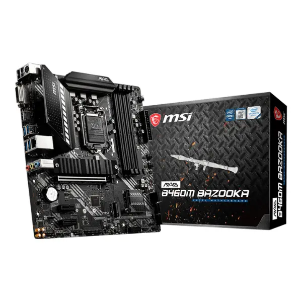 MSI MAG B460M Bazooka Motherboard is designed to deliver reliable performance, stability, and efficiency for gaming and productivity. Built with support for 10th Gen Intel® Core™, Pentium® Gold, and Celeron® processors, this micro-ATX motherboard ensures compatibility with a wide range of CPUs while offering strong connectivity and expansion options. Its military-inspired design combines durability with style, making it a solid choice for budget-conscious gamers and PC builders.