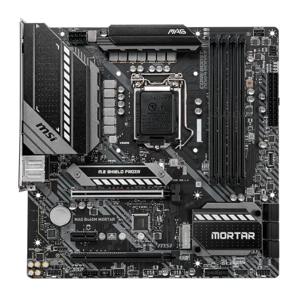MSI MAG B460M Mortar Motherboard is designed for gamers and professionals who want reliability, speed, and efficiency in a compact micro-ATX form factor. Built to support 10th Gen Intel® Core™, Pentium® Gold, and Celeron® processors, this board delivers outstanding stability and performance for gaming, content creation, and everyday computing needs.