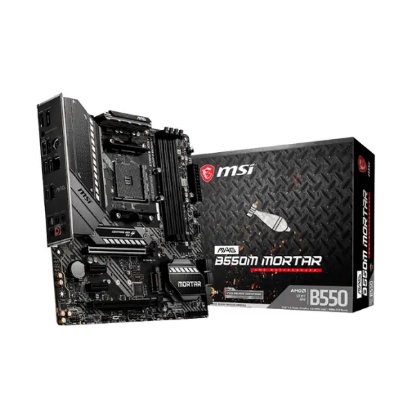 MSI MAG B550M Mortar is a powerful micro-ATX gaming motherboard built to support AMD Ryzen™ 5000, 4000 G-Series, and 3000 Series desktop processors. Designed with the AMD B550 chipset and AM4 socket, it delivers reliable performance for both gaming and productivity. Its compact micro-ATX form factor makes it ideal for smaller builds while maintaining premium features such as PCIe 4.0, advanced cooling options, and high-speed connectivity.