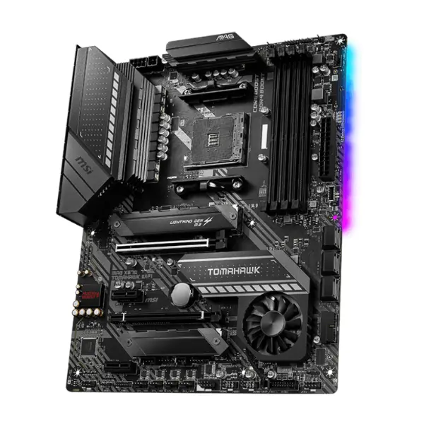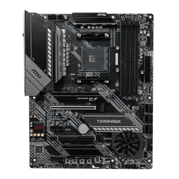 MSI MAG X570 Tomahawk WiFi motherboard combines military-style durability with advanced gaming and professional features. Built for AMD AM4 processors, it supports Ryzen™ 5000, 3rd Gen Ryzen™, and 4000 G-Series CPUs, offering long-term compatibility and high performance. With pre-installed I/O shielding and Frozr Heatsink Design, the board ensures durability and superior cooling, making it ideal for gamers, creators, and prosumers.