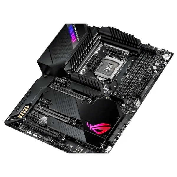 Asus ROG Maximus XII Hero Wi-Fi is a premium ATX motherboard built for enthusiasts who demand power, style, and reliability. Designed around the Intel® LGA 1200 socket, it supports 10th Gen Intel® Core™, Pentium® Gold, and Celeron® processors, ensuring smooth performance for gaming and productivity. Its stealthy, armored design with Aura Sync RGB lighting adds customizable flair, making it the perfect centerpiece for high-end gaming rigs.