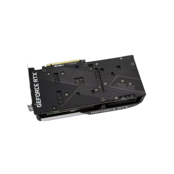 The ASUS Dual RTX 3060 Ti V2 features a strong aluminum backplate that provides structural reinforcement. This durable design prevents PCB flex and protects sensitive components and circuitry from potential damage. It not only adds rigidity but also contributes to the card’s sleek, premium appearance and long-lasting reliability.