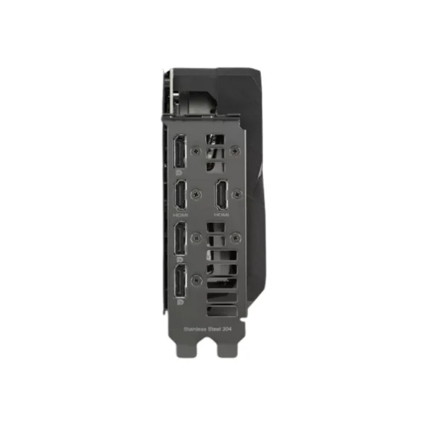 For superior durability, ASUS uses a 304 Stainless Steel mounting bracket on the Dual RTX 3060 Ti V2. This material is tougher and more resistant to corrosion compared to standard brackets, ensuring a longer lifespan and enhanced strength during installation while maintaining a professional, high-quality finish.
