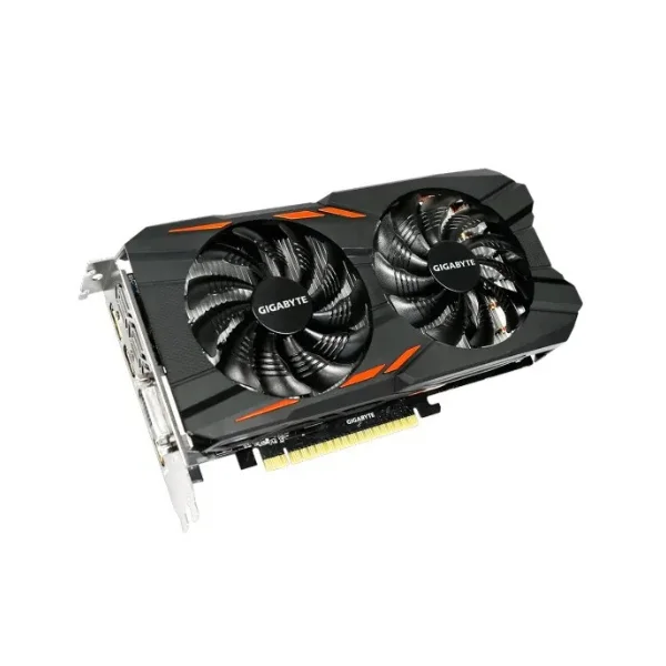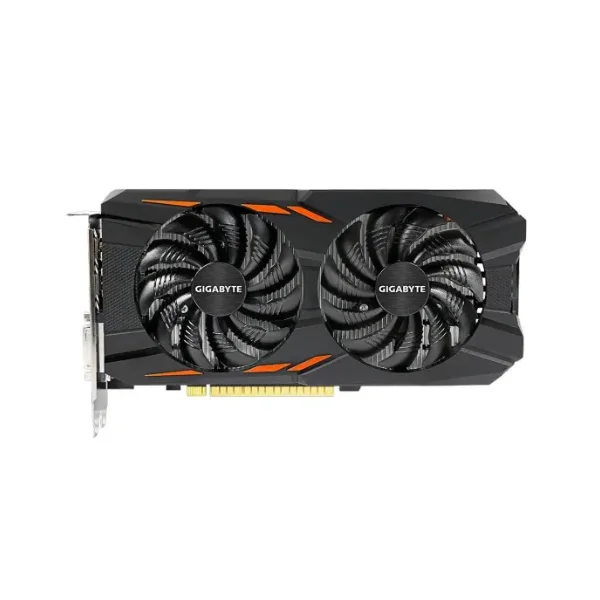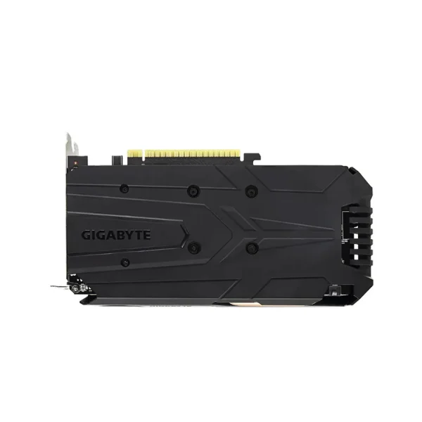 The back plate of the Gigabyte GTX 1050 Ti provides both durability and style. It reinforces the structure of the graphics card, adding rigidity to protect sensitive components. At the same time, it enhances the overall look of the GPU with a clean and sleek design, making it ideal for modern gaming builds.