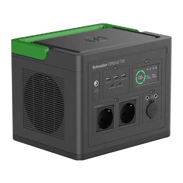 Schneider OffGrid PPS730-GR Portable Power Station 730, 738Wh Lithium-ion, LCD, 2 CEE 7/3 Schuko outlets, Sinewave, 3 USB-A, 2 USB-C, Wireless Charger